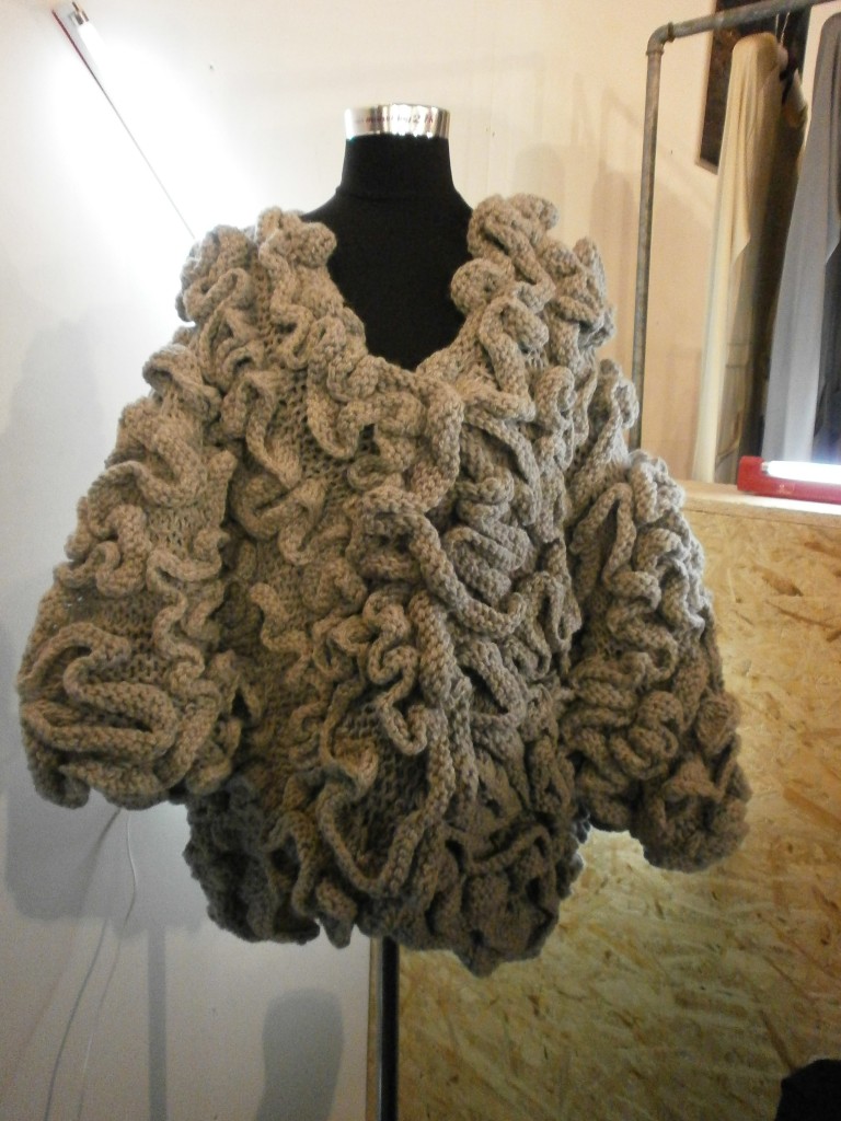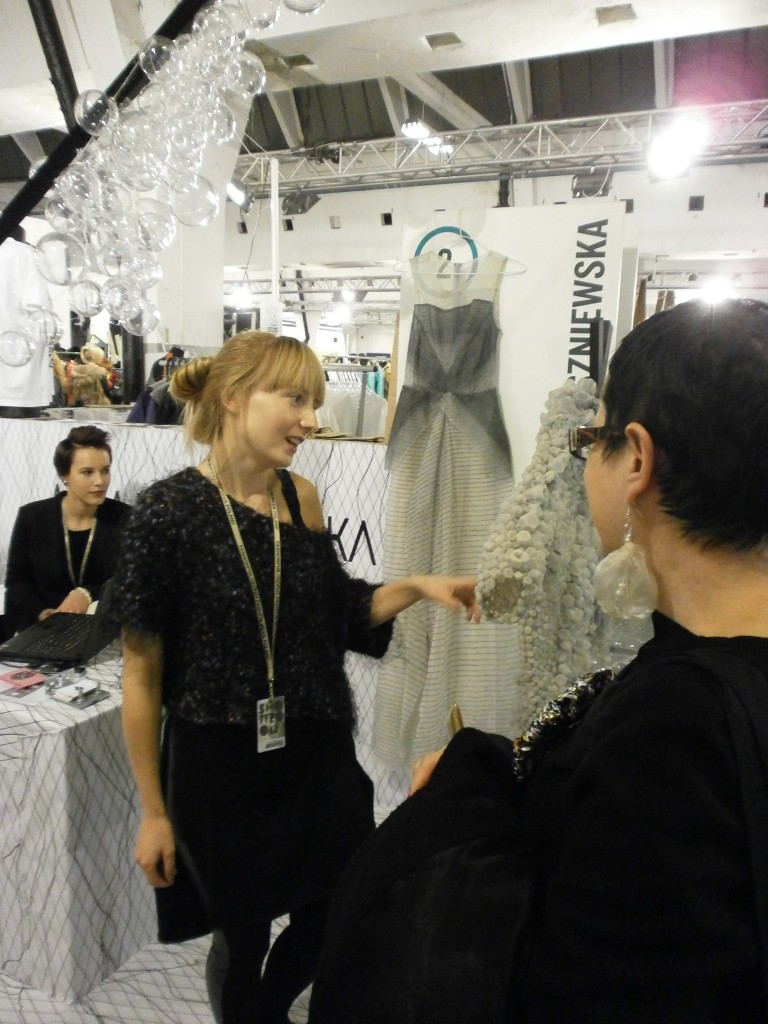 Do nich należało m.in. stoisko Anny Wiszniewskiej z Krakowa. Już w kwietniu 2012 r., podczas poprzedniej edycji FW, Anna Wiszniewska przedstawiła nowatorską kolekcję (wówczas dyplomową) bąbelkowych swetrów i innych elementów ubrań, jak rękawów, kołnierzyków, do tego getrów hybrydowych (które posiadam). Obecna kolekcja także jest tworzona tą metodą, polegającą na ręcznym karbowaniu materiałów. Kolekcja wspaniała.