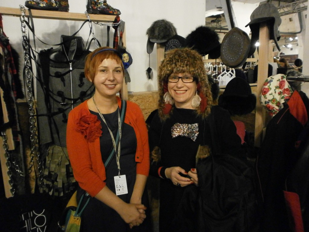 Na zdjęciu Anna Wiszniewska i ja na tle stoiska projektantki.