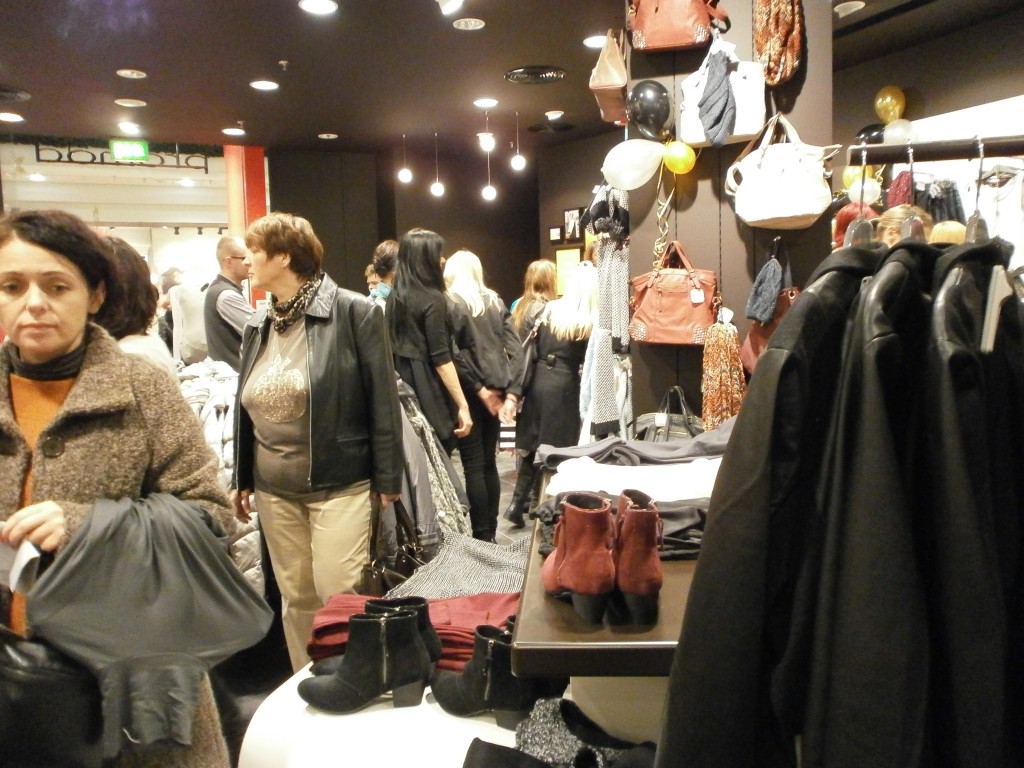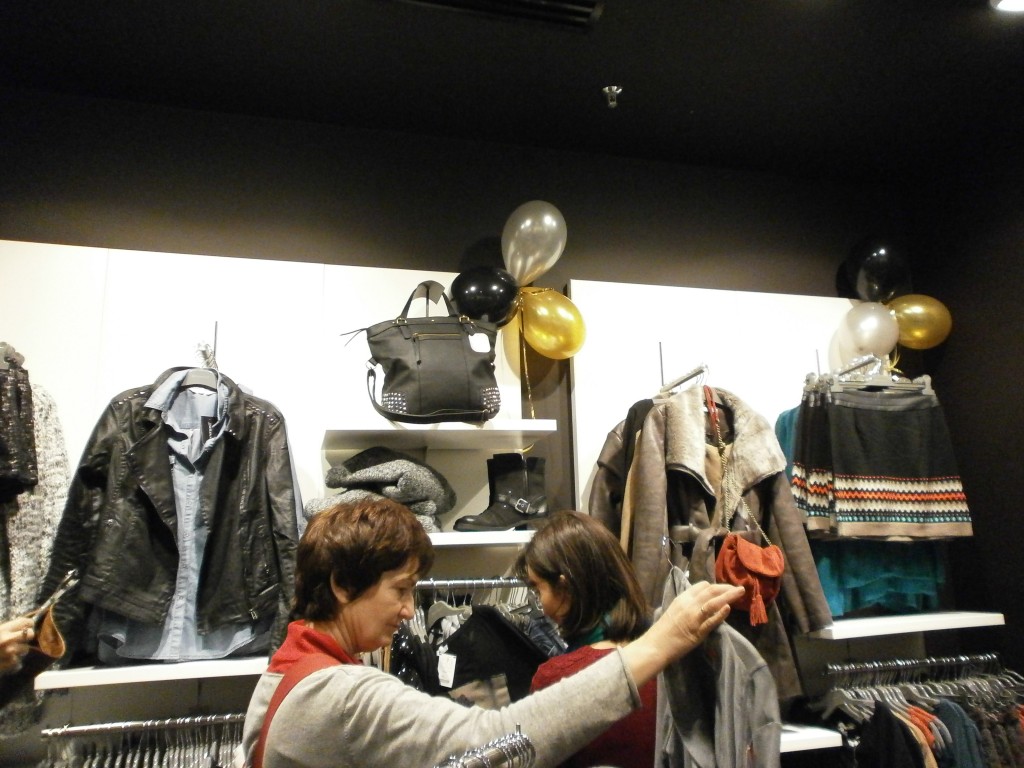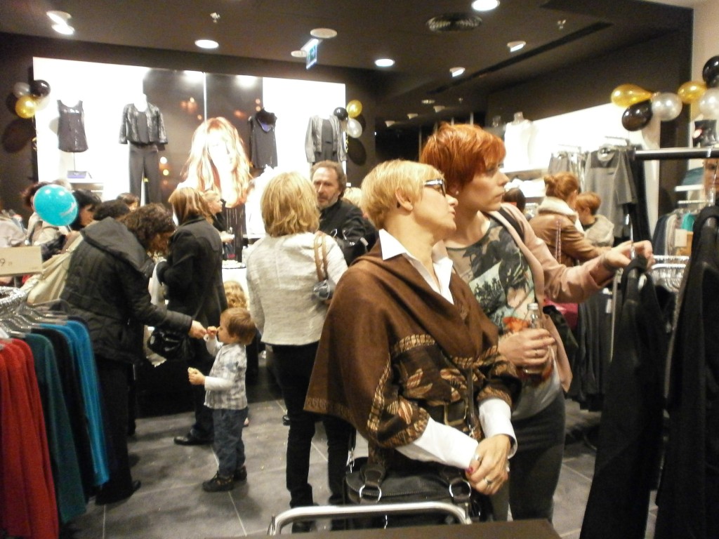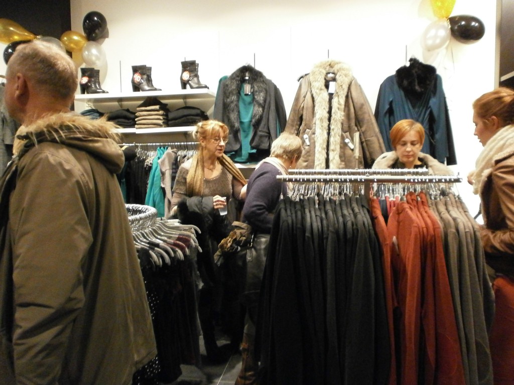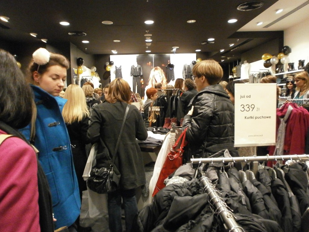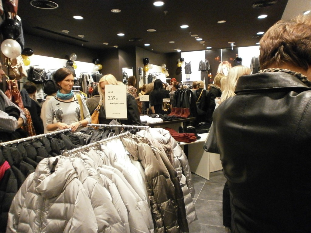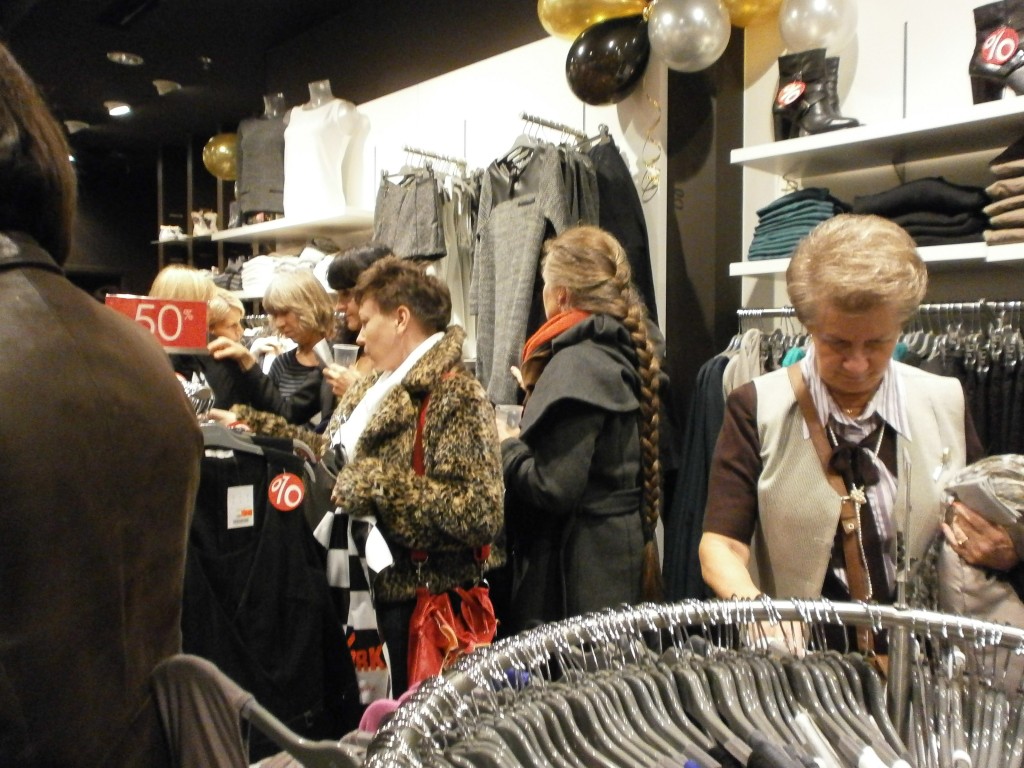 Niektórym paniom towarzyszyli panowie, co widać na zdjęciu, chociaż myślę, że się trochę nudzili, kiedy ich kobiety buszowały między wieszakami i półkami oraz stały w kolejce do przymierzalni, a potem do kasy (płaceniem panowie chyba byli bardziej zainteresowani :-)).