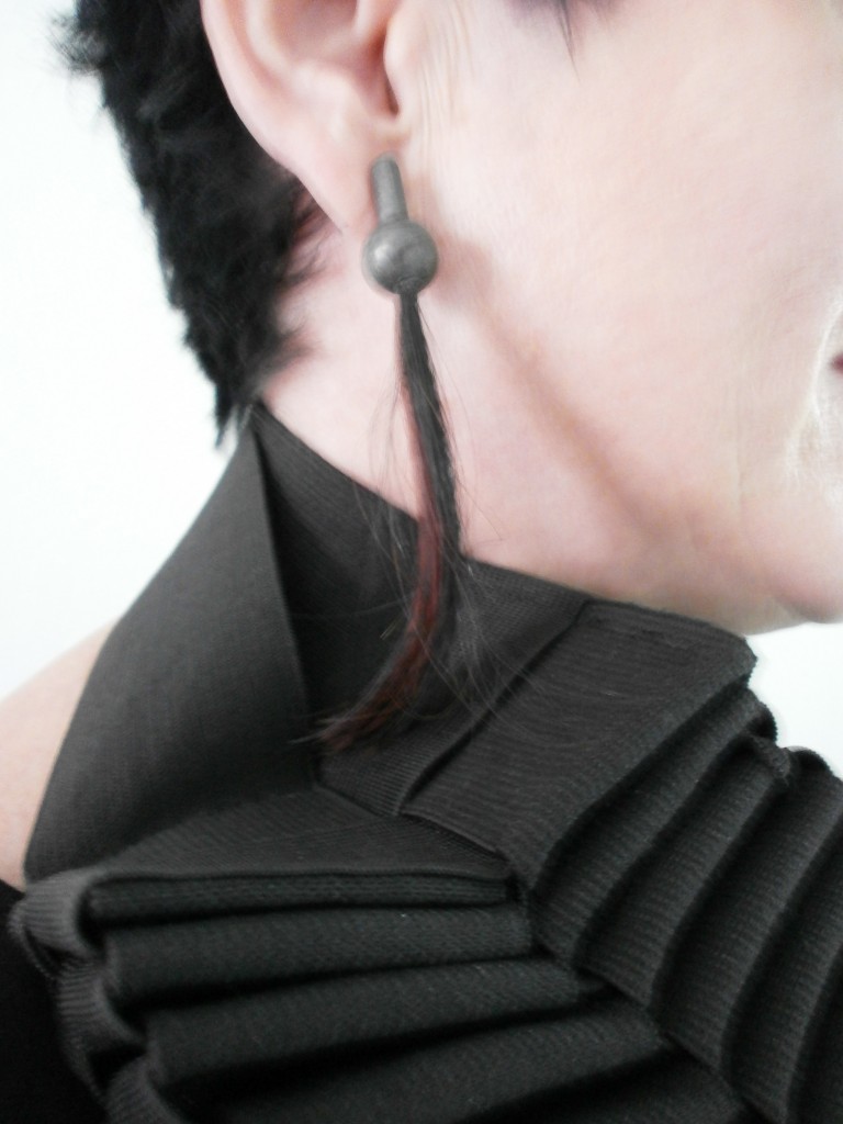 Naszyjnik, lub jak kto woli kołnierz, z czarnej gumy. Od razu mi się spodobał. Świetny pomysł.