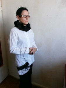 Kryza z cienkiego filcu, czyli okrągły kołnierz rodem z XVI i XVII w., „fałdowany” poprzez zagięcia i przeszycia, który można nosić na dwie strony.